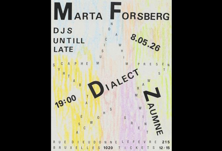 Marta Forsberg est une artiste musicale suédo-polonaise basée à Berlin dont le travail explore le langage, la mémoire et les archives, mêlant souvent des voix humaines et synthétiques ; elle a publié de la musique sur des labels tels que Warm Winters Ltd., Xkatedral et thanatosis, collabore fréquemment avec des interprètes et des chorégraphes, a cofondé Konstmusiksystrar avec Lo Kristenson pour promouvoir l’égalité des genres dans la musique, et a étudié la composition électroacoustique à Stockholm et à Varsovie.